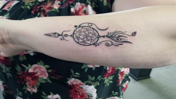 捕梦网纹身图 女生手臂上捕梦网纹身图片