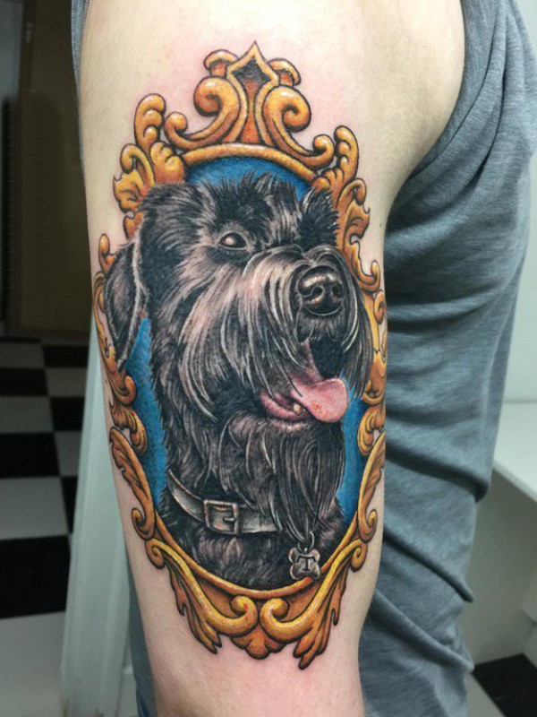 小狗纹身图片 男生手臂上素描纹身小狗纹身图片