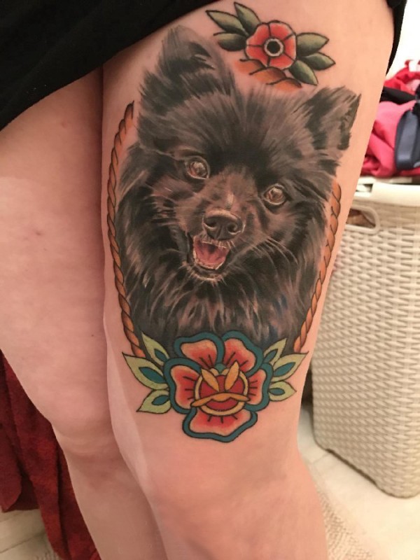 小狗纹身图案 女生大腿上小狗纹身图片