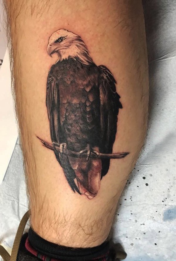 欧美小腿纹身 男生小腿上黑色的老鹰纹身图片
