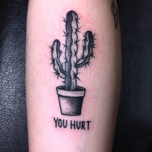 欧美小腿纹身 女生小腿上英文和仙人掌纹身图片
