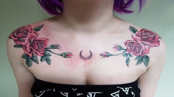 玫瑰纹身 女生肩部玫瑰纹身图片