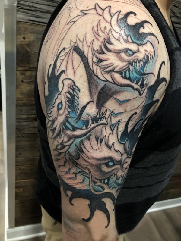 飞龙纹身图 男生手臂上飞龙纹身图案