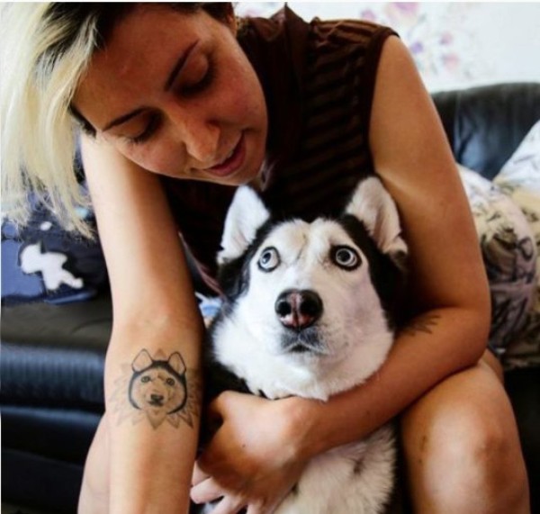 宠物狗纹身 女生手臂上黑色的小狗纹身图片