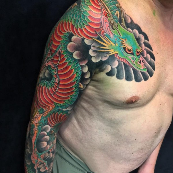 日式手彫刺青作品—半甲龙很感谢客户认可手彫刺青,手彫是日本纹身的手工雕刻技术,时间可以追溯到日本17世纪的江户时代。19世纪,手彫技术被日本黑帮挪用,被用作入会仪式,象征着从此就是江湖中人。在日式传统