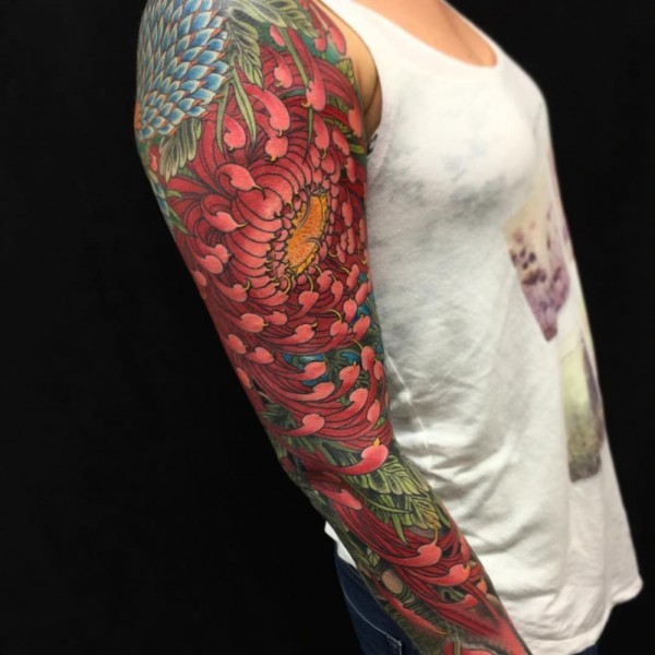 花朵纹身图案-20张身体各个部位传统彩绘纹身图案
