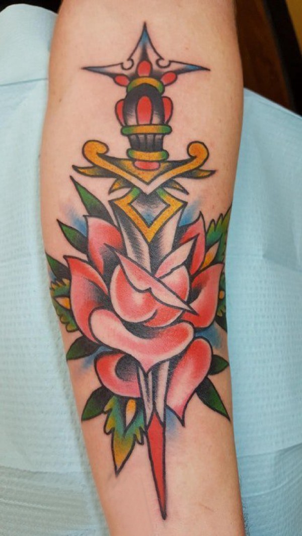欧美匕首纹身 男生手臂上欧美匕首纹身图片