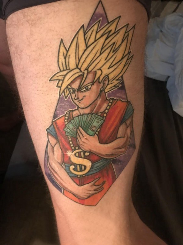 大臂纹身图 男生大臂上彩色的超级赛亚人纹身图片