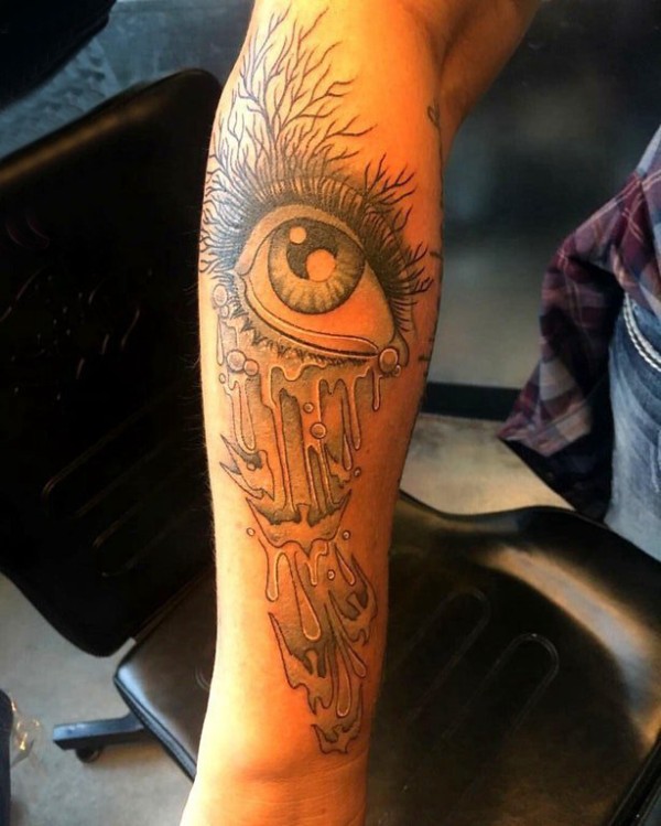 抽象线条纹身 男生手臂上黑色的眼睛纹身图片