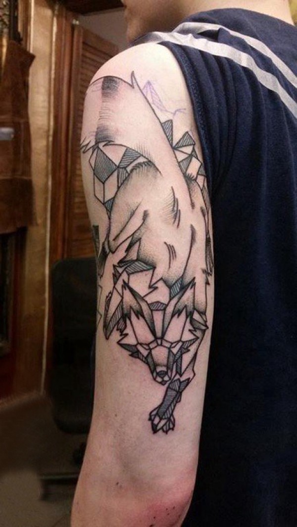 双大臂纹身 男生大臂上黑色的狼纹身图片