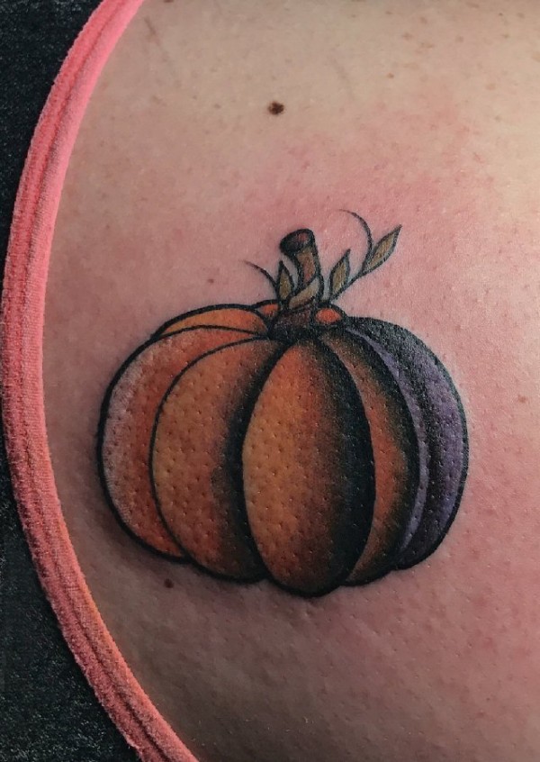 食物纹身 女生后肩上彩色的南瓜纹身图片