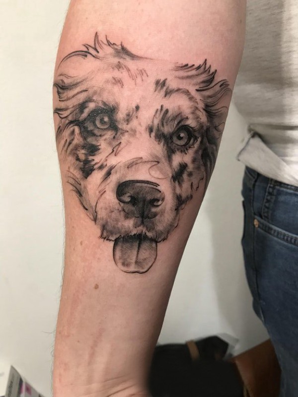 手臂纹身素材 男生手臂上黑色的小狗纹身图片
