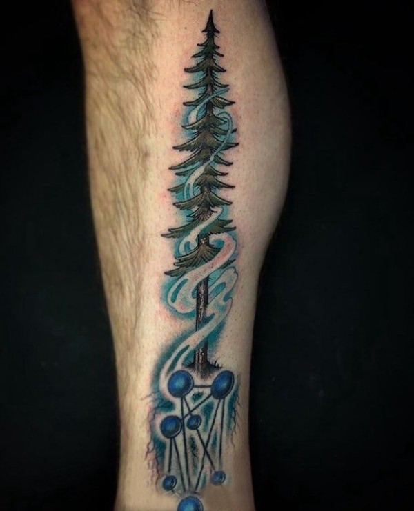 欧美小腿纹身 男生小腿上彩色的大树纹身图片
