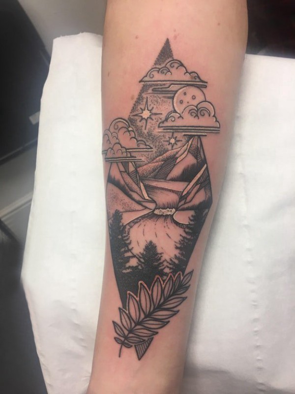风景纹身图案 男生手臂上风景纹身图案
