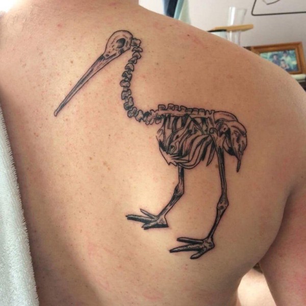 骨头纹身 男生后背上黑色的鸟骨头纹身图片