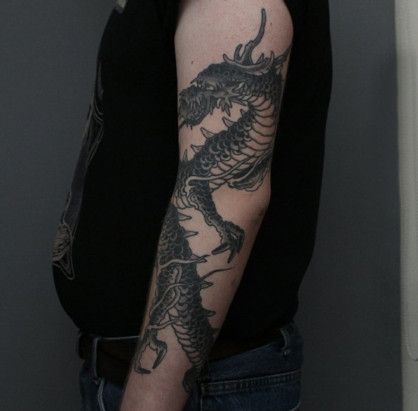 飞龙纹身图 男生手臂上飞龙纹身图片