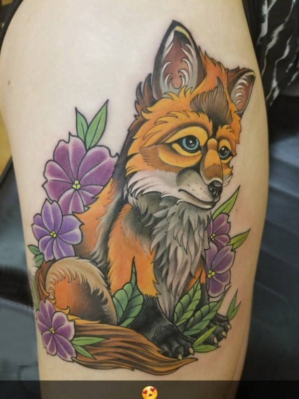 彩色狐狸纹身 男生手臂上彩色狐狸纹身图片