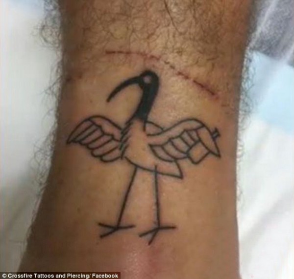 仙鹤纹身 男生小腿上黑色的鹤纹身图片
