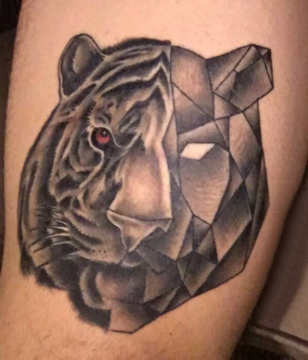 欧美小腿纹身 男生小腿上黑色的几何老虎纹身图片