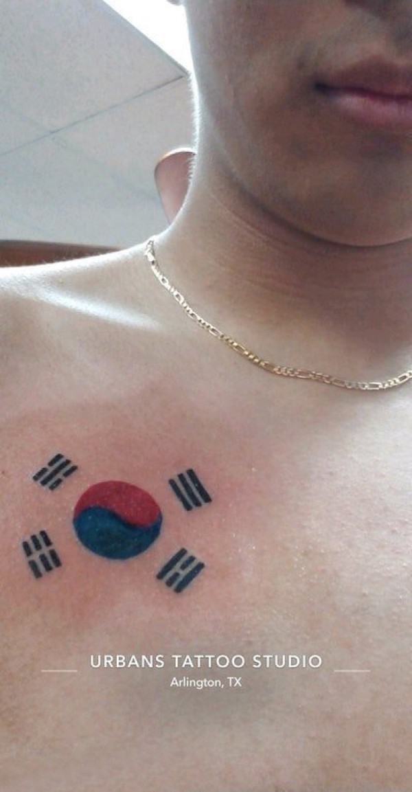 国旗纹身图案 男生胸部彩色的韩国国旗纹身图片