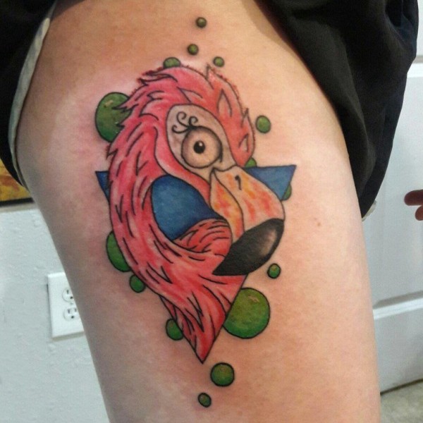大腿传统纹身 女生大腿上三角形和鸟纹身图片