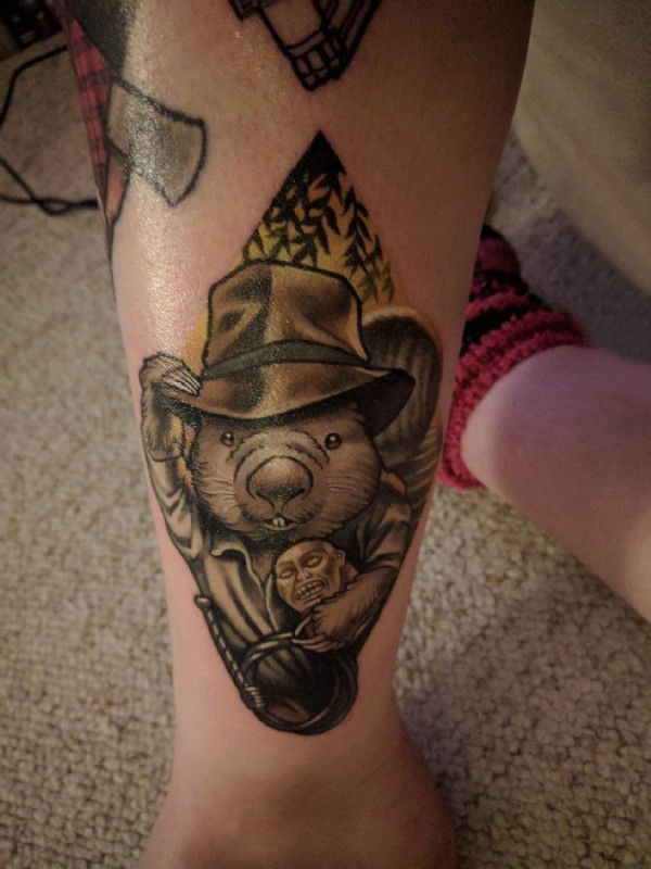 小动物纹身 女生小腿上彩色的老鼠纹身图片