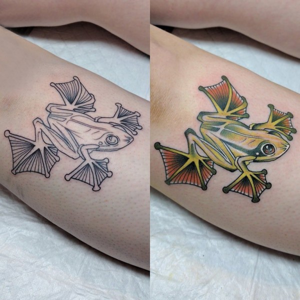 百乐动物纹身 女生小腿上彩色的青蛙纹身图片