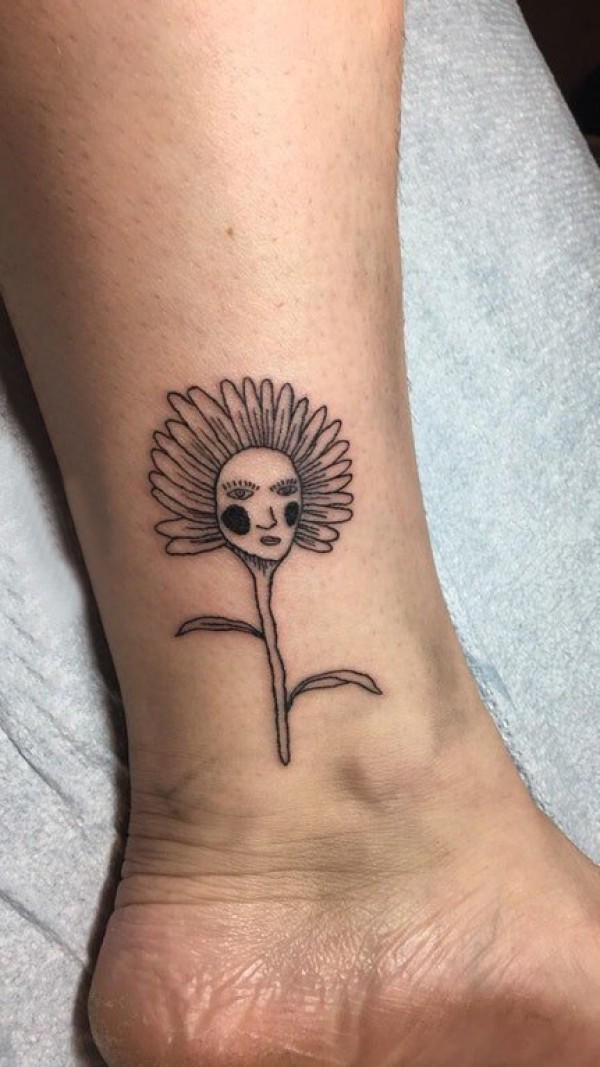 向日葵纹身图案 男生小腿上向日葵纹身图案