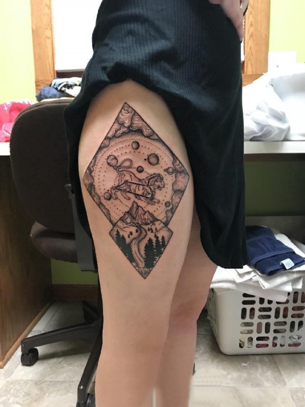 纹身星球 女生大腿上星球纹身图案