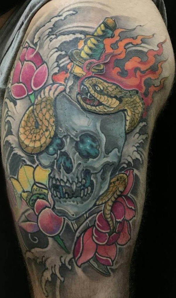 纹身骷髅头 男生手臂上骷髅头纹身图片