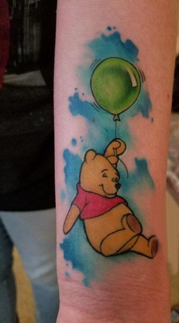 纹身卡通 女生手臂上气球和小熊维尼纹身图片