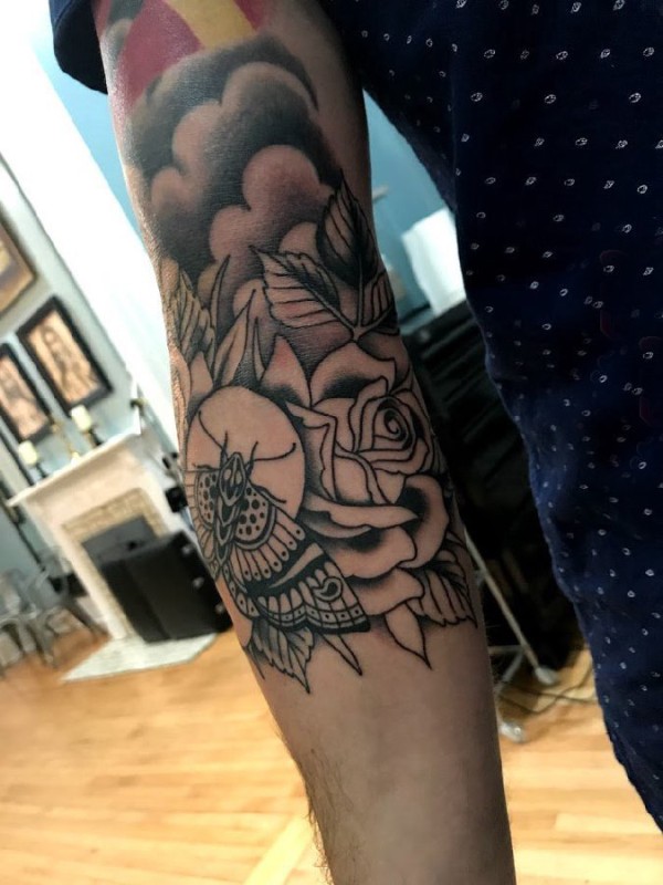 女性手臂上漂亮的玫瑰花纹身图案