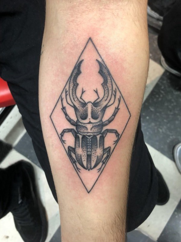 手臂纹身图片 男生手臂上菱形和昆虫纹身图片
