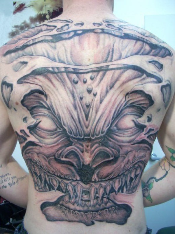 新传统风格的9张男性黑灰大满背纹身图案图片