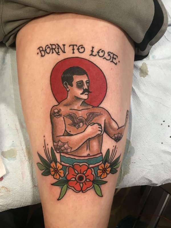 人物纹身图片 男生小腿上人物纹身图片