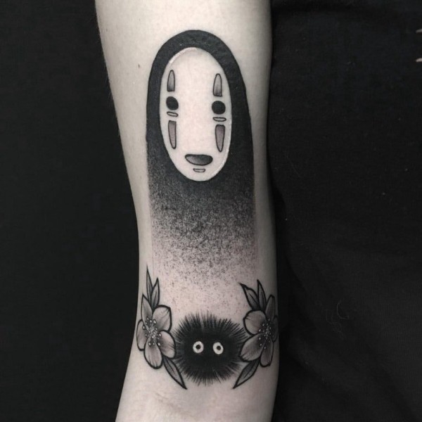 手臂纹身图片 女生手臂上花朵和卡通人物纹身图片