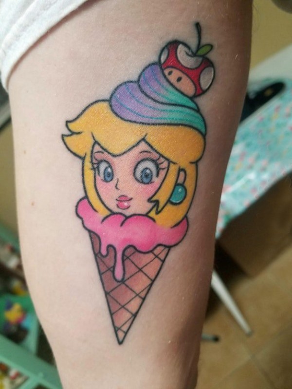双大臂纹身 女生大臂上冰淇淋和人物纹身图片