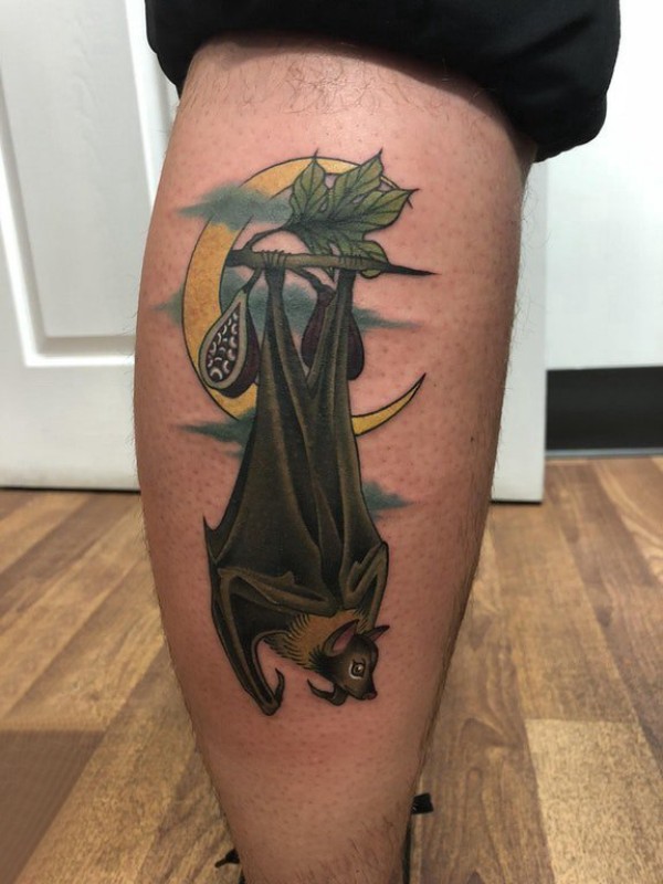 欧美小腿纹身 男生小腿上彩色的蝙蝠纹身图片