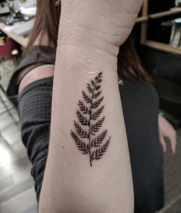 手臂纹身图片 女生手臂上黑色的叶子纹身图片