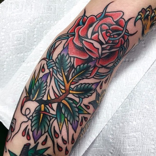 欧美玫瑰纹身 男生手臂上花朵纹身图片