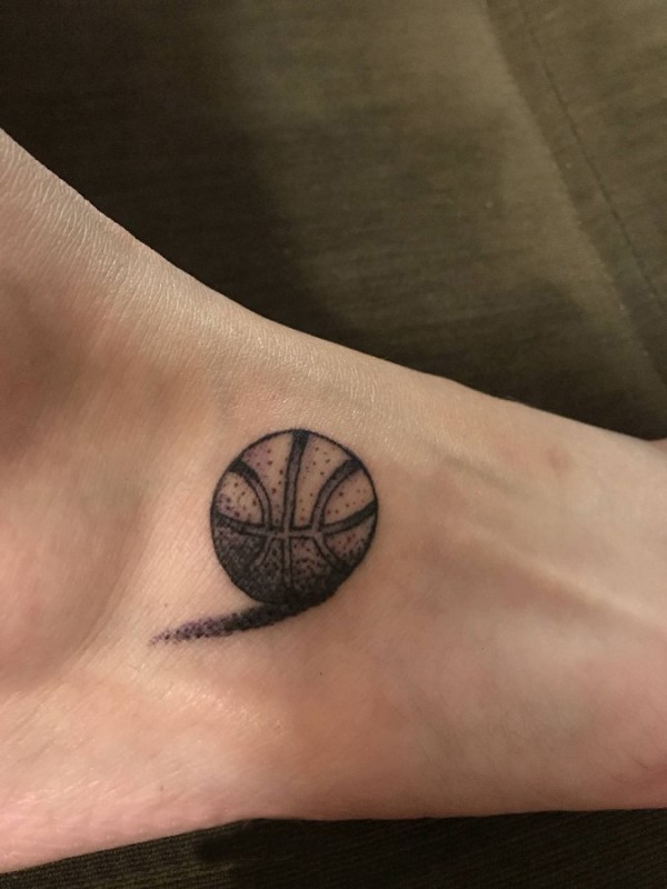 脚背纹身 男生脚背上黑色的篮球纹身图片
