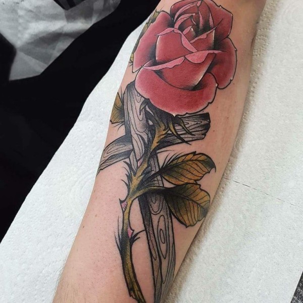 玫瑰纹身 男生手臂上玫瑰纹身图片