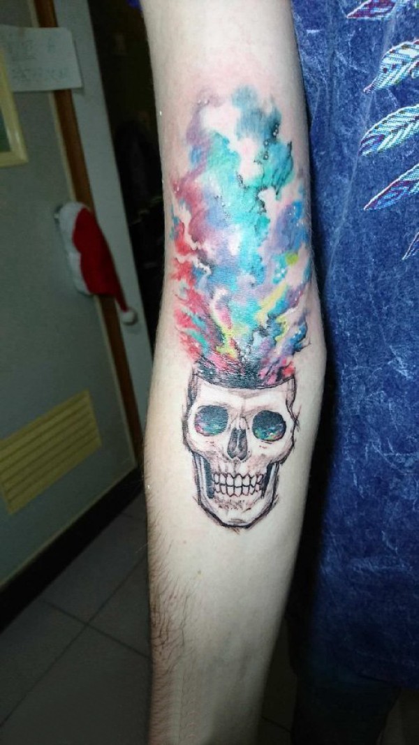 骷髅纹身 女生手臂上骷髅头纹身图片
