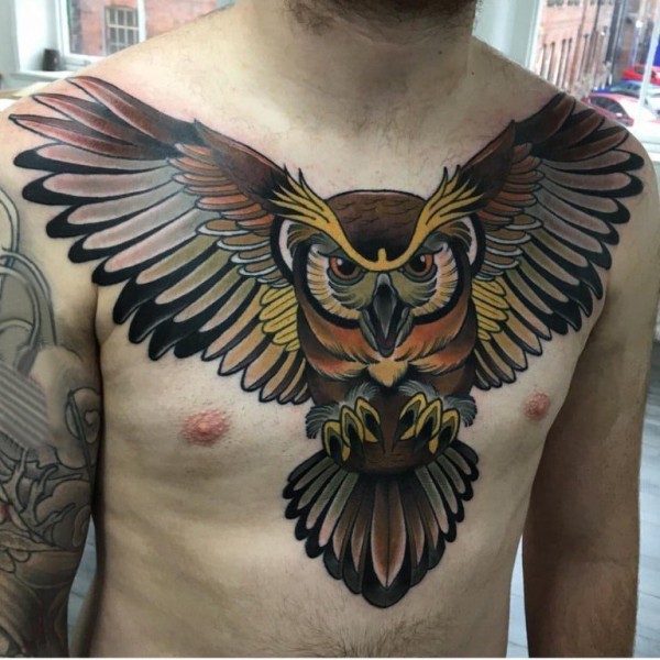 彩色老鹰纹身 男生胸部彩色老鹰纹身图片