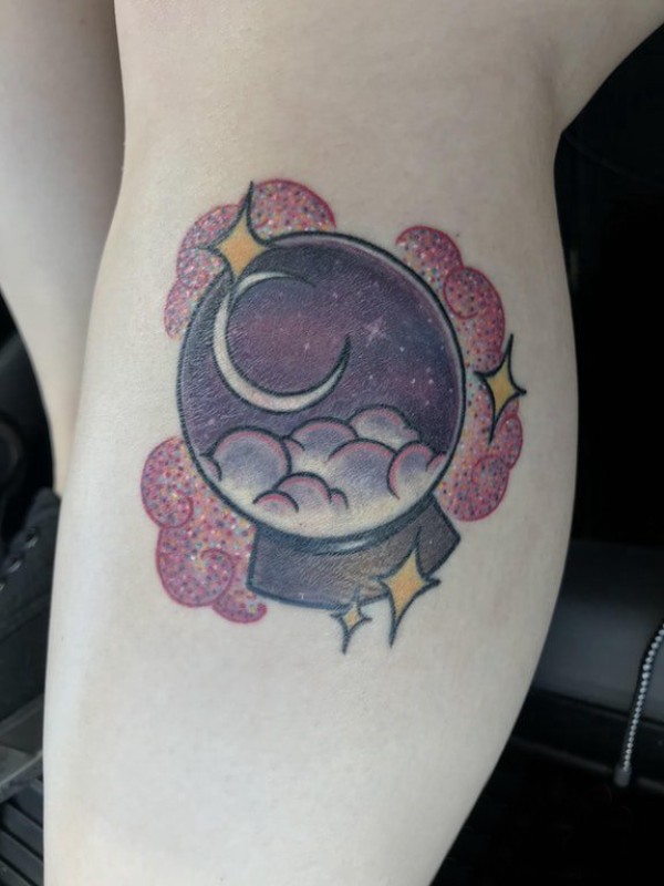 小腿纹身女 女生小腿上彩色的水晶球纹身图片
