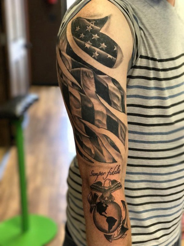 美国国旗纹身 男生手臂上美国国旗纹身图片