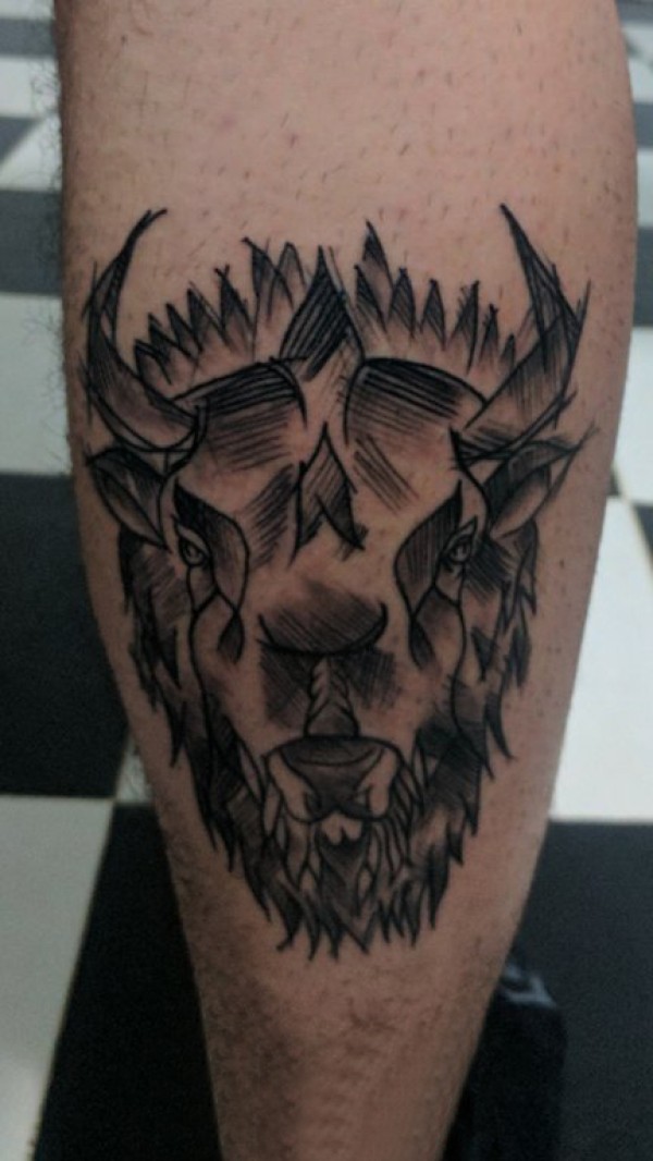 羊头纹身 男生小腿上撒旦羊头纹身图片