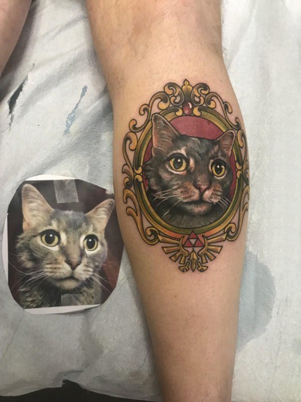 小猫咪纹身 男生小腿上小猫咪纹身图片