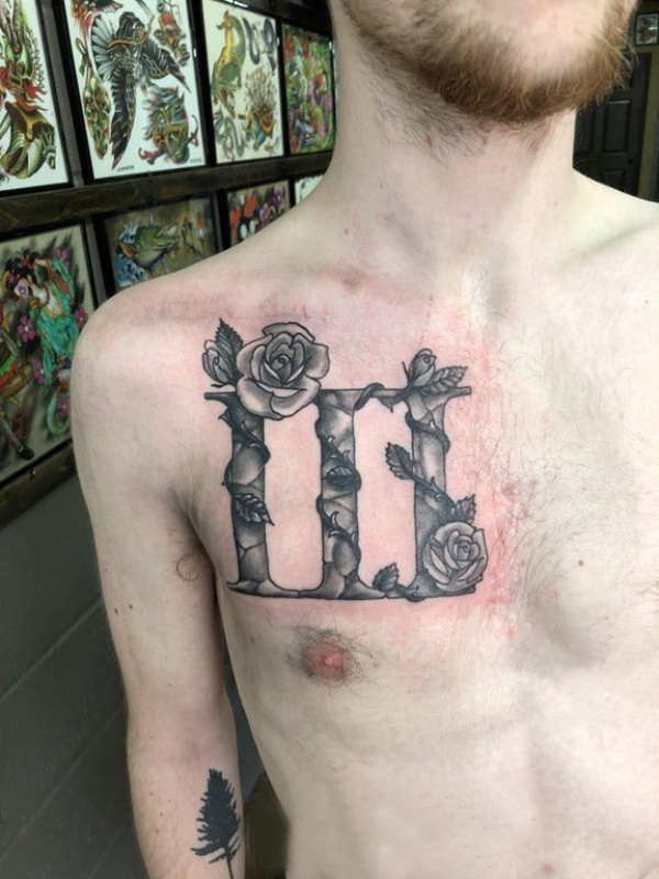 玫瑰纹身 男生胸部玫瑰纹身图片