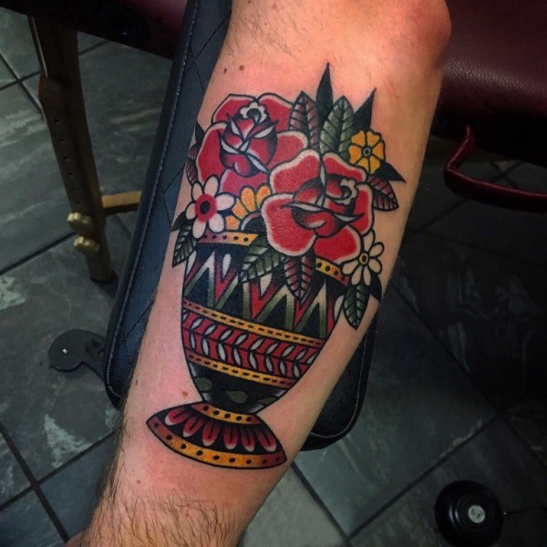 文艺花朵纹身 男生小腿上文艺花朵纹身图片